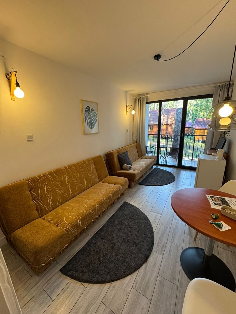 Pokoj 15 to wygodne miejsce dla 1 do 2 osób oraz dostawka dla dziecka do 4 lat. Składa się z pokoju dziennego wyposażonego w dwie rozkładane kanapy, lodówkę, czajnik, naczynia i sztućce oraz stół z dwoma krzesłami. Do dyspozycji gości jest telewizor oraz szafa na ubrania. Z pokoju dziennego można wyjść na balkon, który pozwala cieszyć się świeżym powietrzem. Apartament zapewnia komfortowy pobyt w cichej okolicy, z dogodnym dostępem do morza i lokalnych atrakcji.