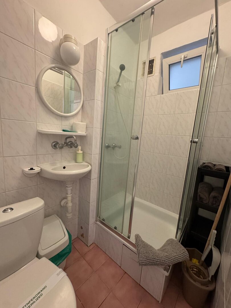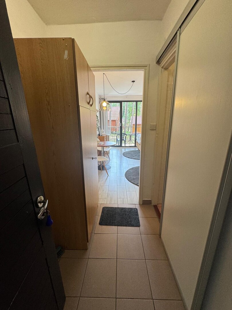 Apartament 16 przeznaczony jest dla 1 do 2 osób oraz dostawki dla dziecka do 4 lat. Składa się z pokoju dziennego, w którym znajduje się dwie rozkładane kanapy, lodówka, czajnik, naczynia i sztućce oraz stół z dwoma krzesłami. Do dyspozycji gości jest telewizor, szafa na ubrania oraz balkon, który pozwala odpocząć na świeżym powietrzu. Apartament zapewnia wygodę i spokój, idealny na relaksujący pobyt blisko morza.