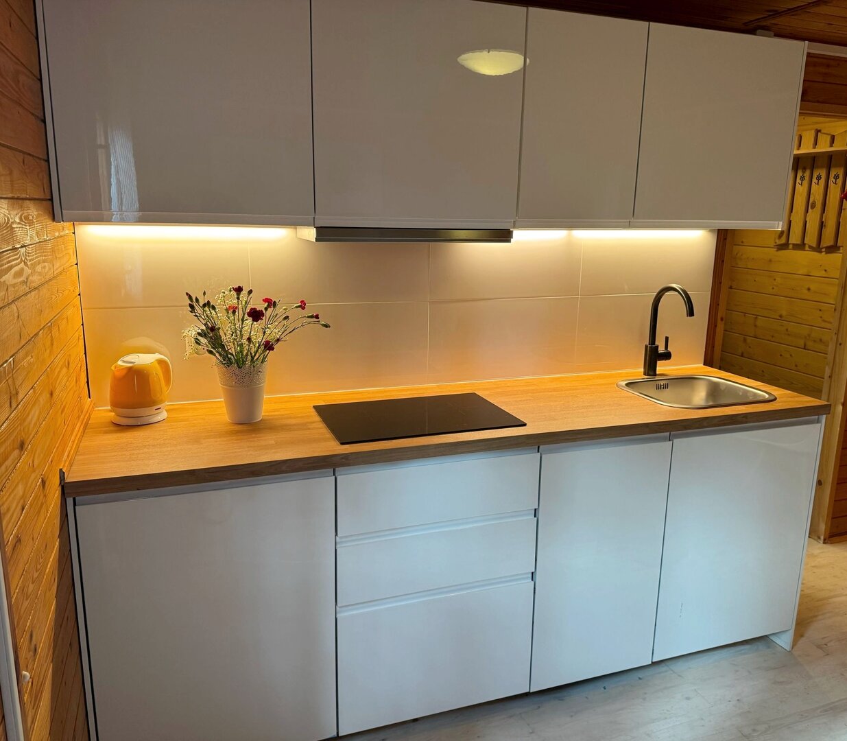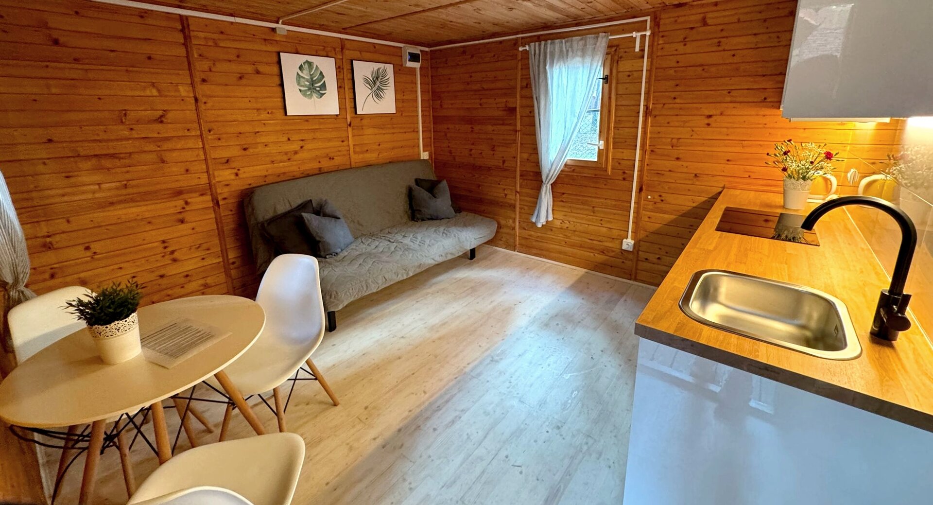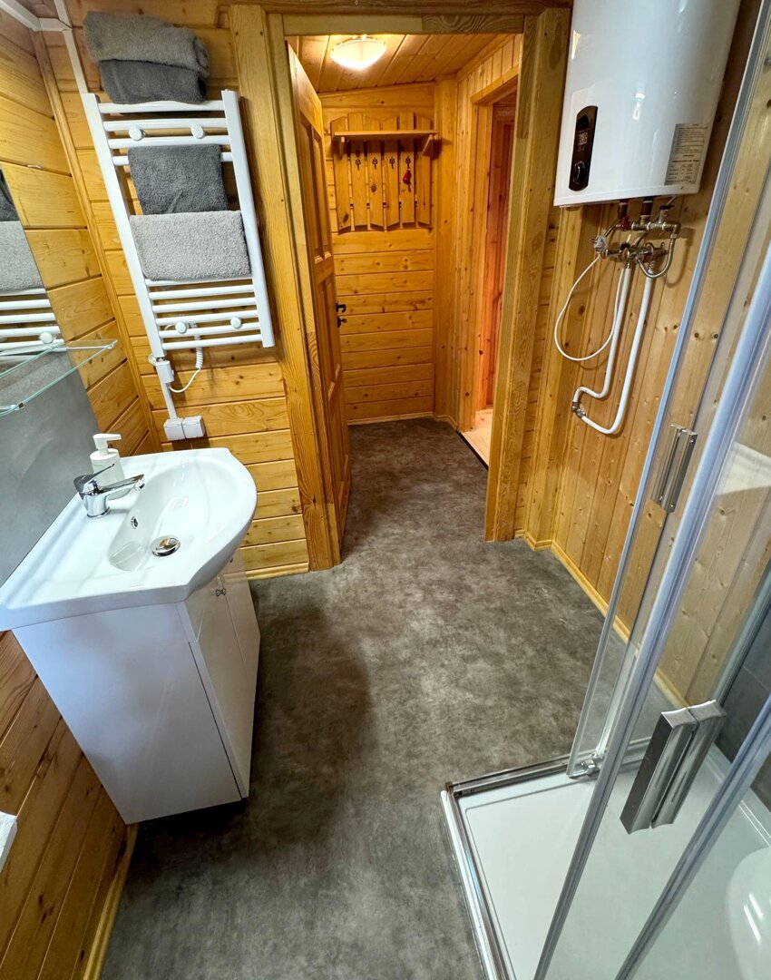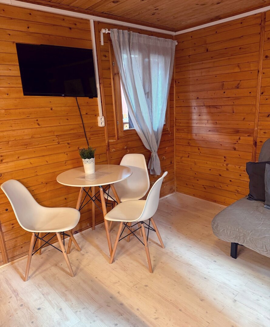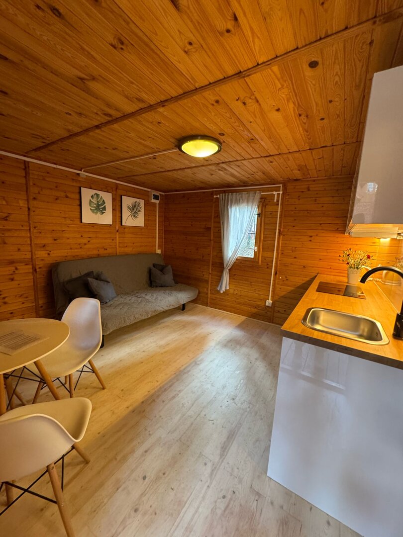 Stokrotka 15 oferuje wygodny domek dla 2 osób z możliwością dostawki dla dziecka do 4 lat. Domek wyposażony jest w w pełni funkcjonalny aneks kuchenny z płytą indukcyjną oraz zmywarką, co pozwala na swobodne przygotowywanie posiłków podczas pobytu.