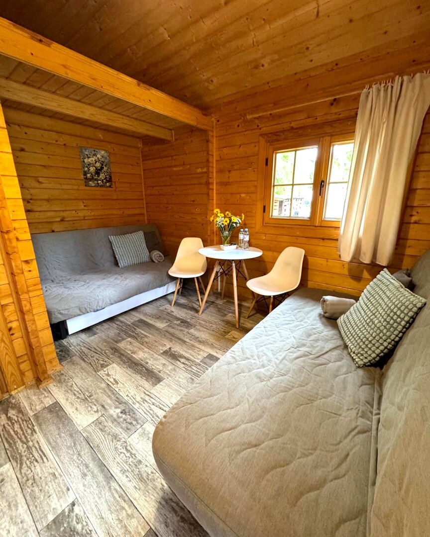 W domku dostępne są dwie rozkładane kanapy dwuosobowe oraz podstawowe wyposażenie kuchenne: lodowka,czajnik, talerze, kubki i sztućce.